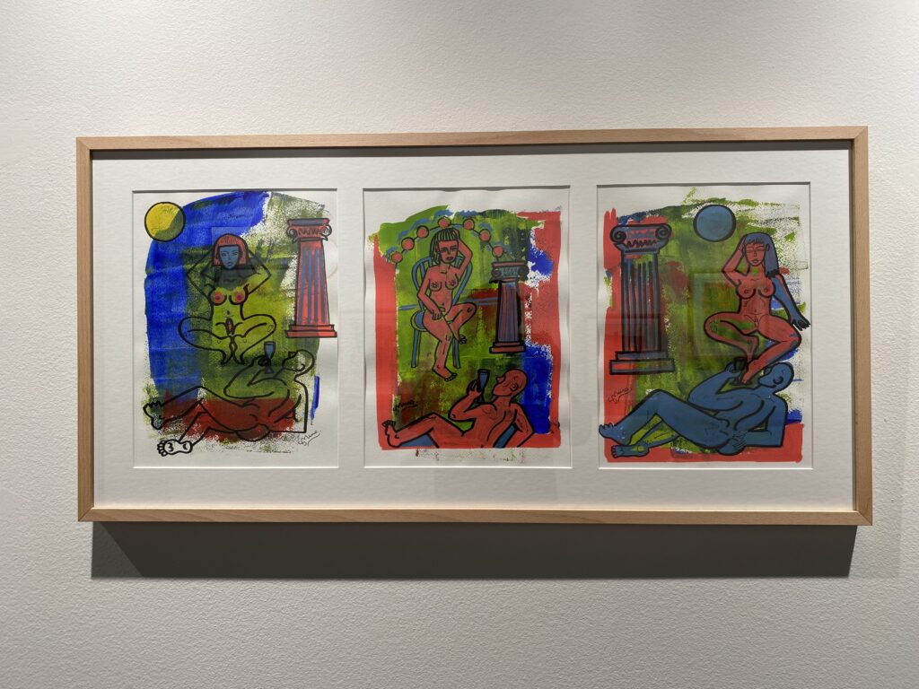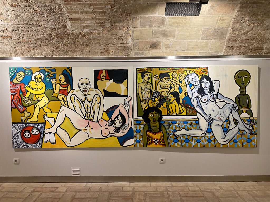 El concepto que engloba esta muestra pictórica, que abarca piezas de esta última década, es “el hedonismo”. Hedonismo entendido como una búsqueda del placer y la felicidad, no entendida de manera simplista o banal.