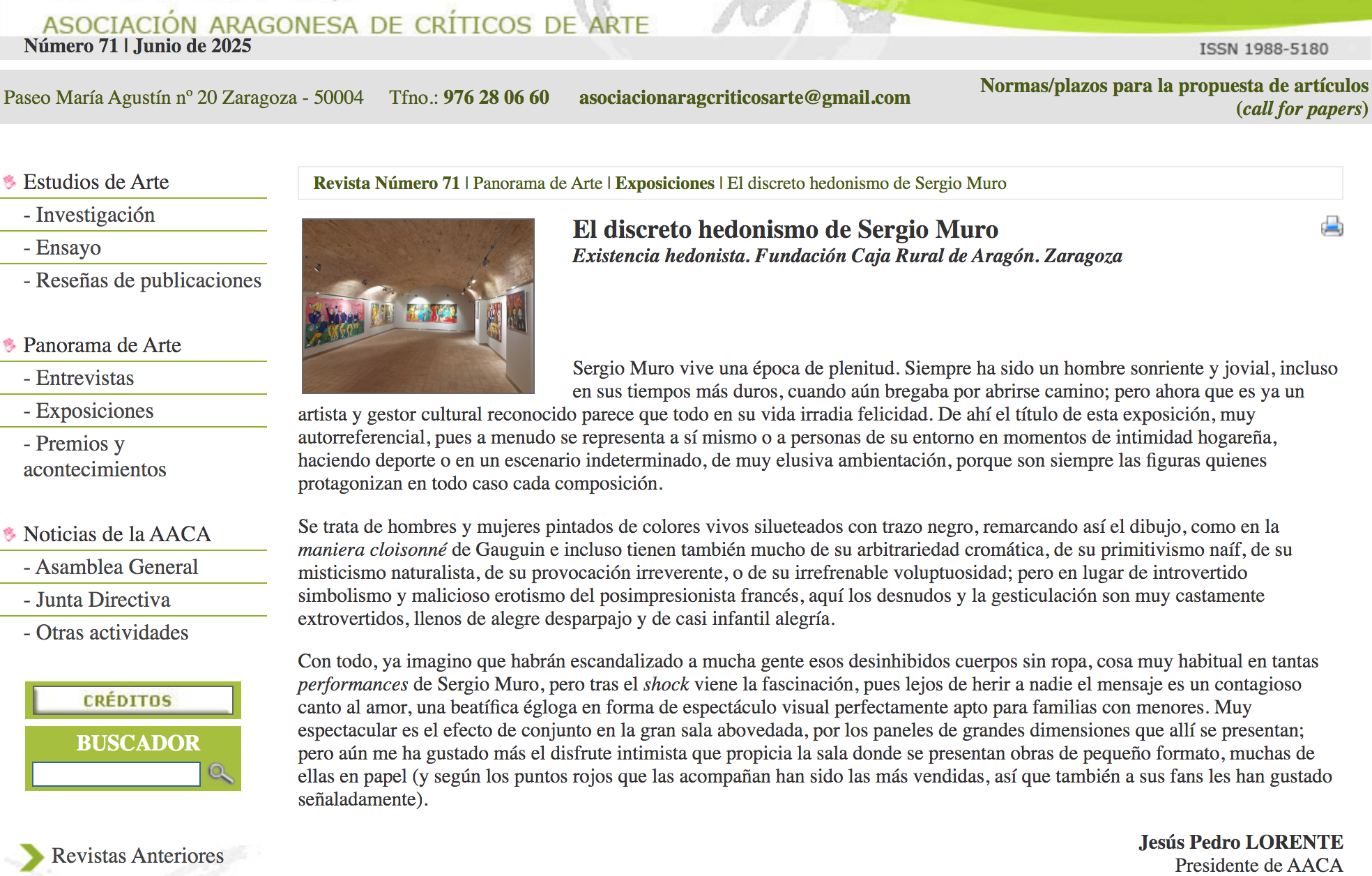 Recensión crítica del catedrático de Arte Jesús Pedro Lorente en aacadigital:
